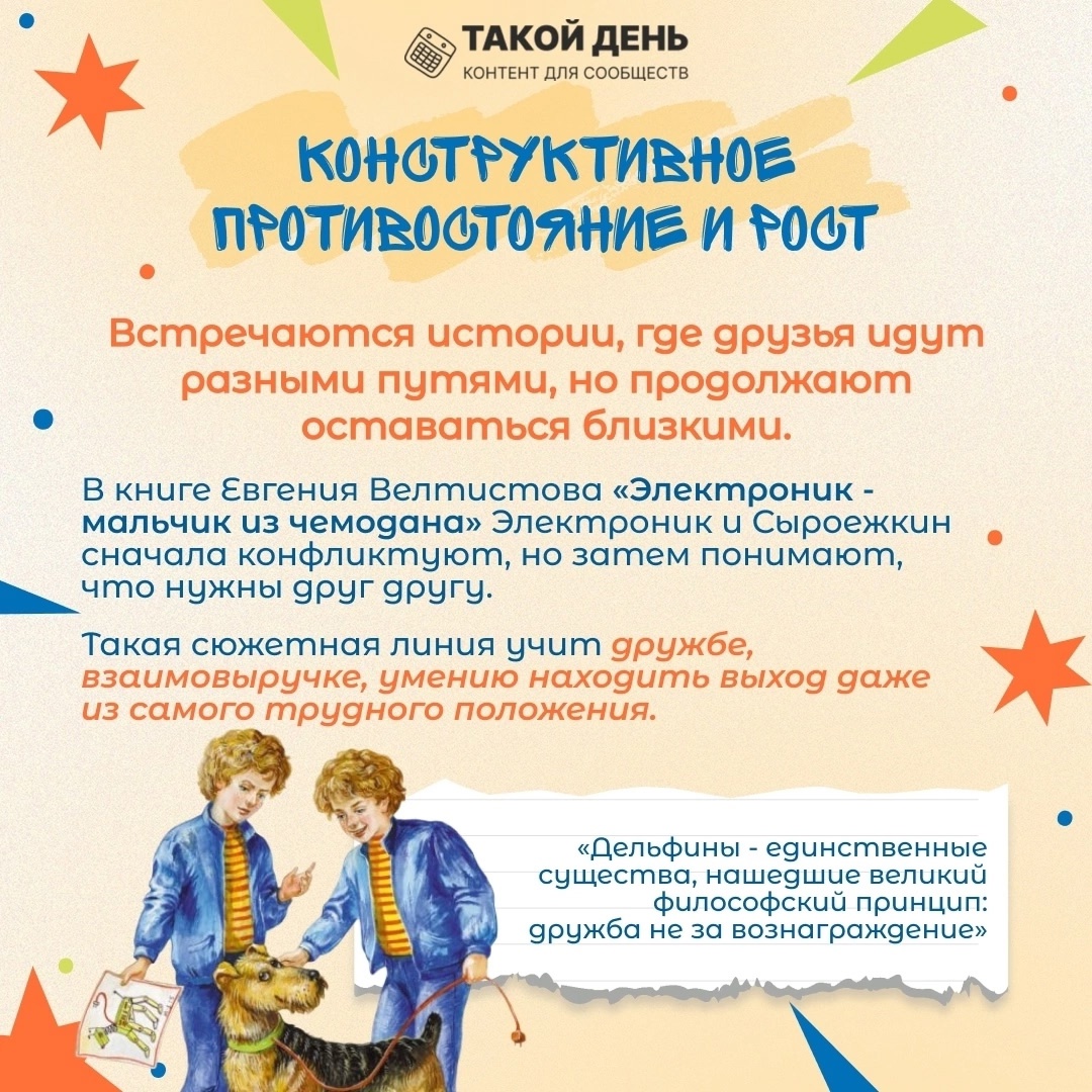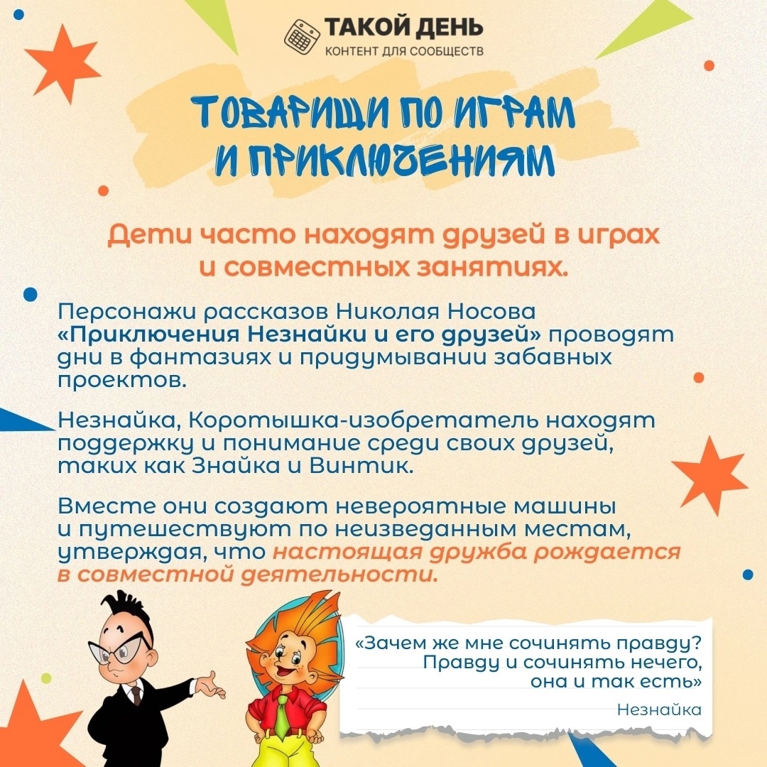 В карточках рассказываем о том, как рождается дружба между героями литературных произведений.