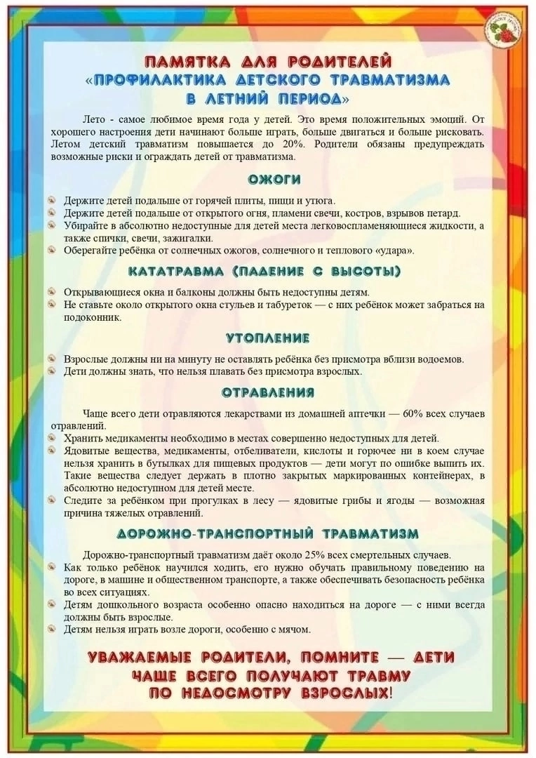 Профилактика детского травматизма в летний период.